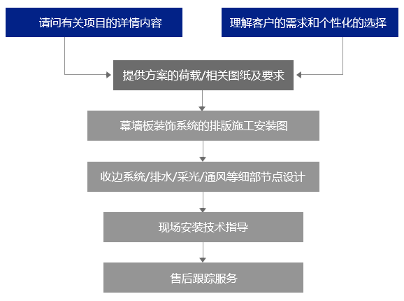 依靠科学的方法,采用严谨的流程,经过与客户的沟通并共同斟酌提供合理的装饰幕墙板及其系统技术安装方案。